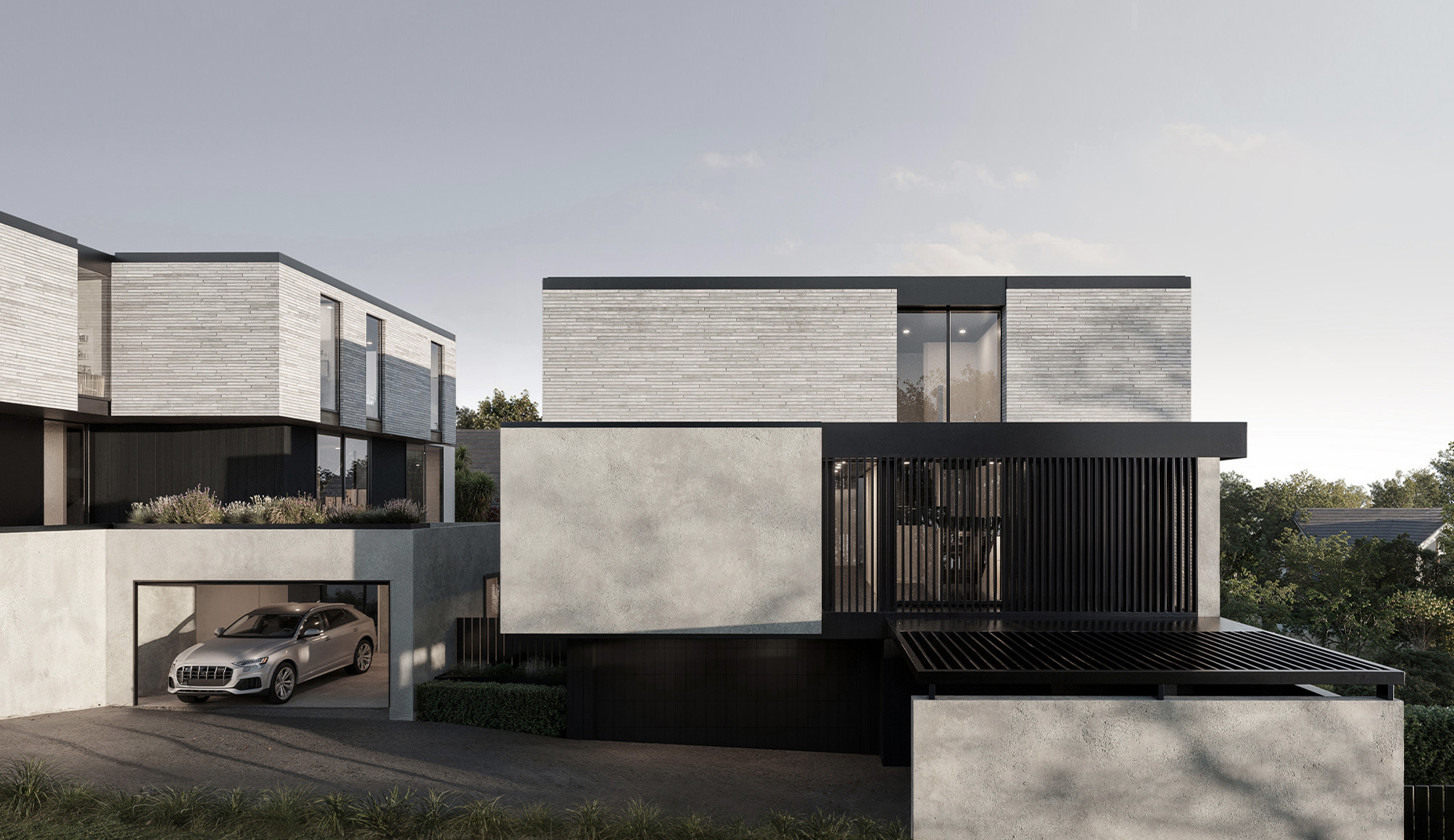 This contemporary residential project is located in the beautiful neighbourhood of Remuera, known for its many heritage houses. The design thoughtfully responds to this context by matching the light palette of the neighbouring buildings while introducing a sleek, modern architectural language. The façade combines bold black metal cladding with crisp white brickwork and Resene Integra finishes, delivering a seamless integration of textures and tones. This carefully curated material palette emphasizes clean lines, precise alignment, and a modern minimalist aesthetic, enhancing the building’s sleek and refined appearance.