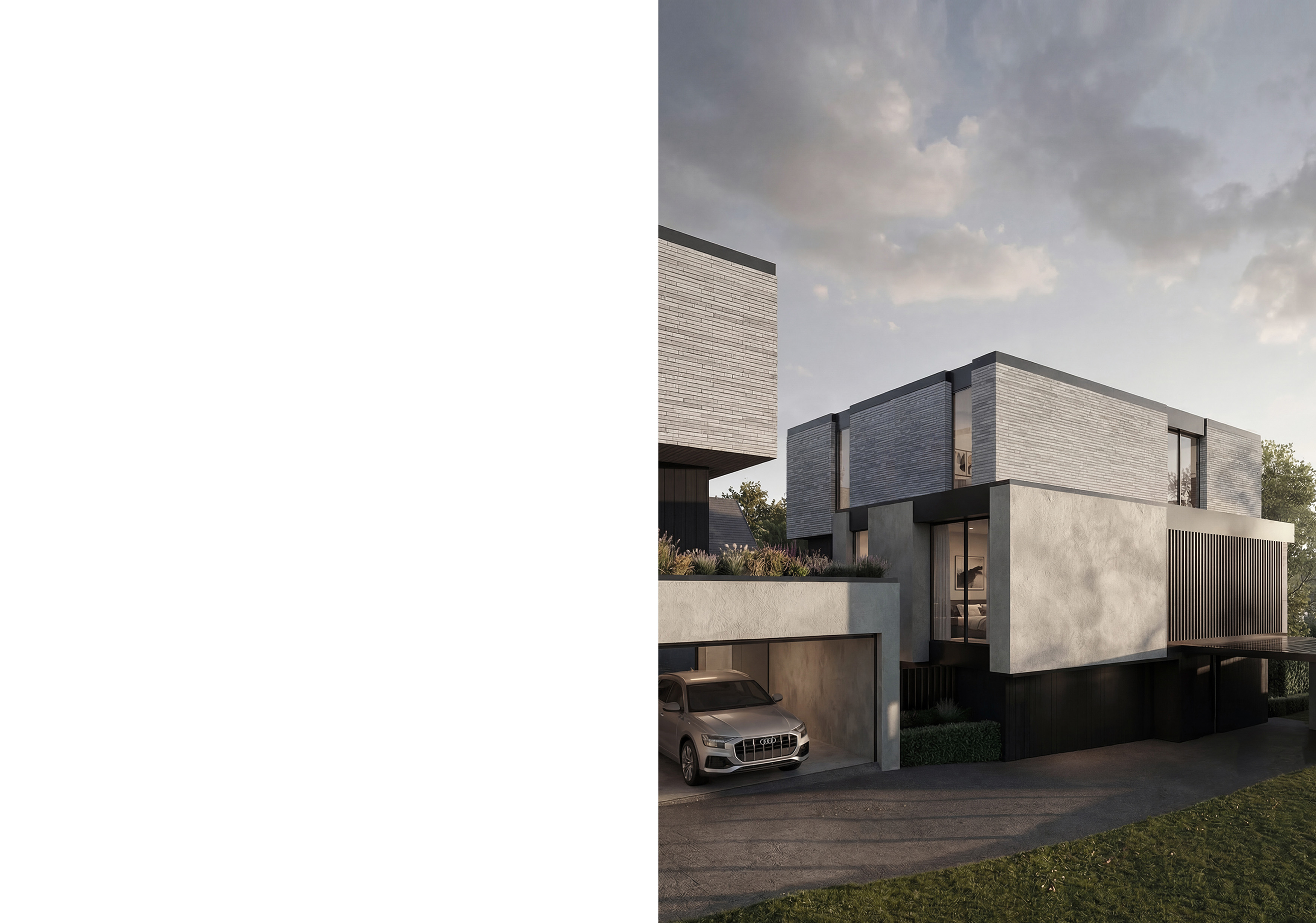 The three-lot development features lots that each cover a total area of approximately 280 to 300 square meters, offering thoughtfully designed living spaces. Each residence is characterised by grand double-height entrances, which provide an impressive sense of scale and welcome. Inside, the open-plan layout effortlessly connects the living and kitchen areas, promoting a fluid and functional living environment ideal for modern lifestyles and entertaining.